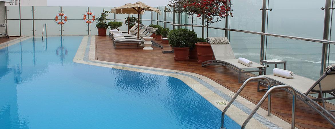 Let’s talk about that swimming pool. It’s on the rooftop, heated, and boasts glorious views over Lima and the Pacific Ocean. Pair your swim with a session at the health and fitness center, which is outfitted with a squash court, spa, and solarium. When the weather is nice, you can also take your exercise outdoors on the Malecon, the promenade that runs along the Lima coastal cliffs.